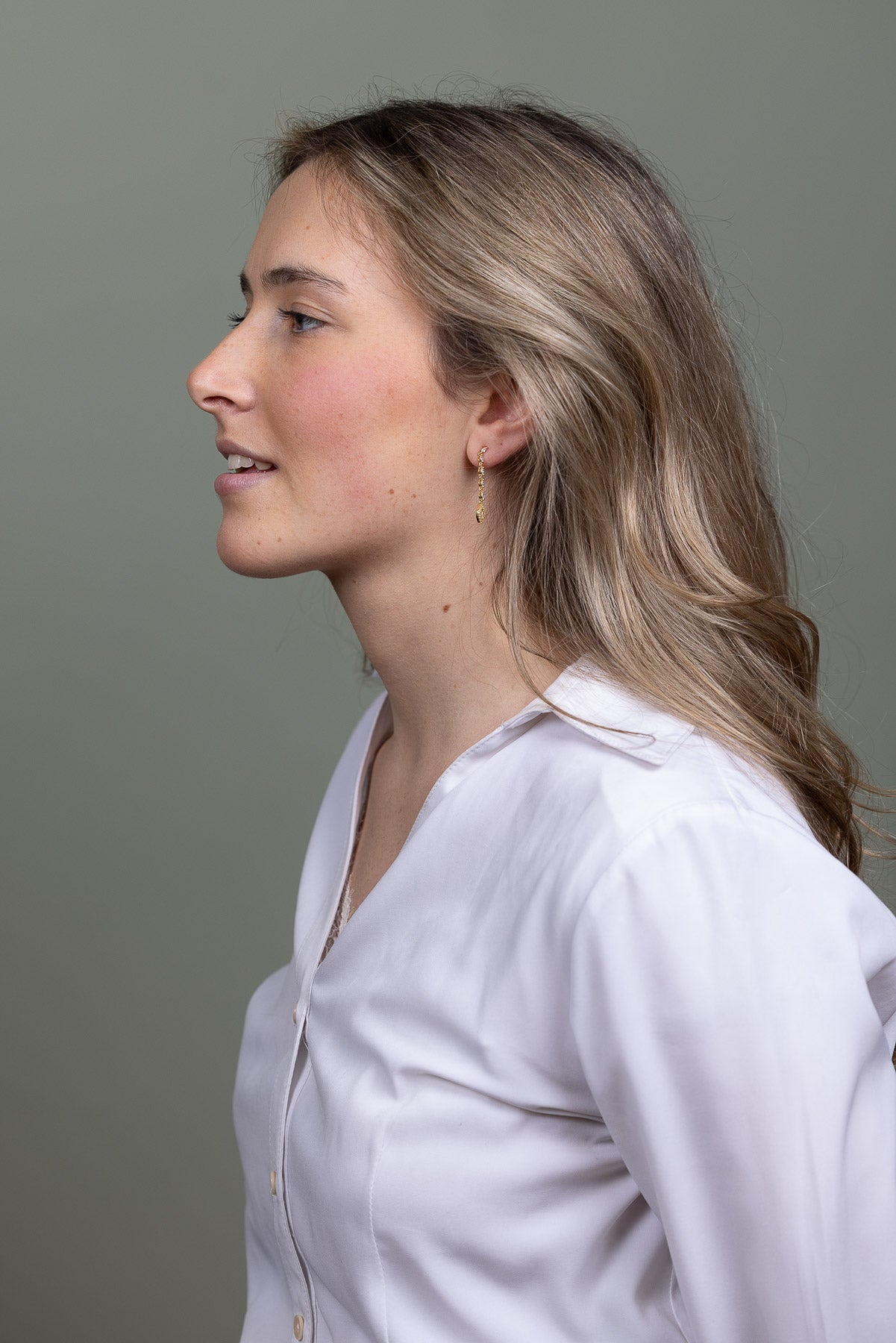 Material: Plata de Ley 925 Acabado: Baño en Oro de 18k Sin Níquel y Sin Plomo Cierre: Tuerca Circonitas/Minerales: 2 * 1,5 mm Medida de Marquesa: 9 * 5,5 mm Medida: 36 mm